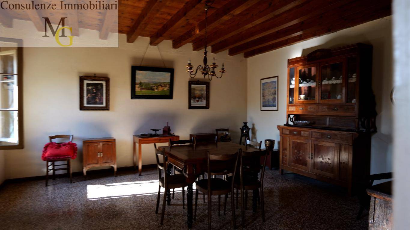 Lasciatevi trasportare in un viaggio nel tempo all'interno di questa villa storica risalente all'800 dove il tempo si è fermato, questo immobile dalle dimensioni generose tipiche di quell'epoca è una chicca nel cuore di Gambellara (VI). Il grande ingresso verso il giardino privato, luminoso ed accogliente lascia spazio alla sala da pranzo con camino, travi a vista e pavimento originale. Dall'altro lato abbiamo la cucina; qui domina il camino maestoso ed imponente punto nevralgico della casa, attraverso questa stanza si accedeva alla stalla ed anche alla cantina. La stalla porta all'esterno proseguendo con un bel porticato fronte ad un fabbricato piu' piccolo ex ricovero attrezzi. Al piano primo si accede attraverso una scala di pietra diventata ora liscia e ben levigata dal passaggio delle persone negli anni; troviamo la zona notte, con cinque stanze da letto oltre ad un bagno ed un disbrigo, un tempo bivacco dei tedeschi durante la guerra. Conculde il tutto una soffitta di ca 197 mq. da ristrutturare ma dove è possibile realizzare un'altra abitazione luminosa e arieggiata. Per vivere una favola, dovete solo chiedere una visita su questo immobile dal sapore retro'.